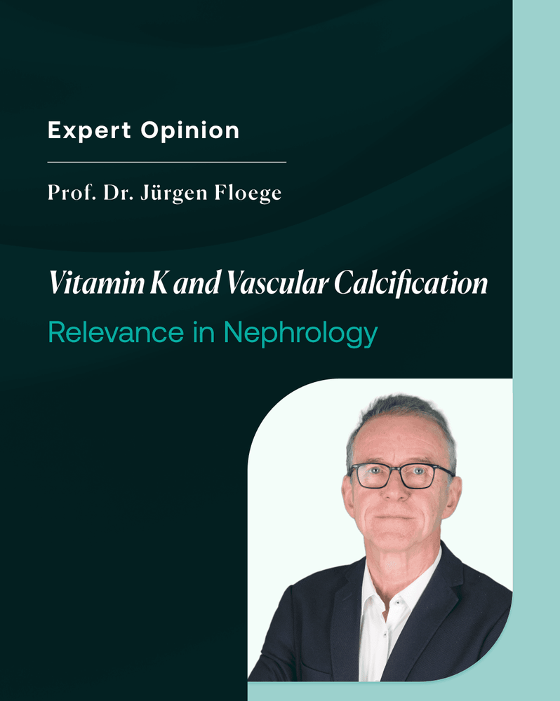 Vitamin K ist vor allem für seine Rolle in der Blutgerinnung bekannt – doch insbesondere Vitamin K2 übernimmt darüber hinaus wichtige Funktionen in Gefäßen und Knochen. In dieser Expert Opinion erläutert Prof. Dr. med. Jürgen Floege, warum gerade Patientinnen und Patienten mit chronischer Nierenerkrankung und Dialysepflicht besonders stark von einem Vitamin-K2-Mangel betroffen sind – und weshalb sich Studien mit synthetischem K2 bisher als wirkungslos erwiesen. Diskutiert werden klinische Studienergebnisse und therapeutische Implikationen.